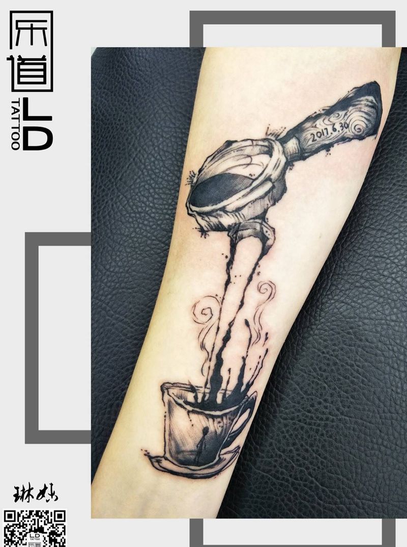 当前位置: 首页 >山东省青岛市纹身店-西海岸美术刺青纹身图案>咖啡师的咖啡杯纹身图片_手稿成品静物原创清新手臂素描纹身图案