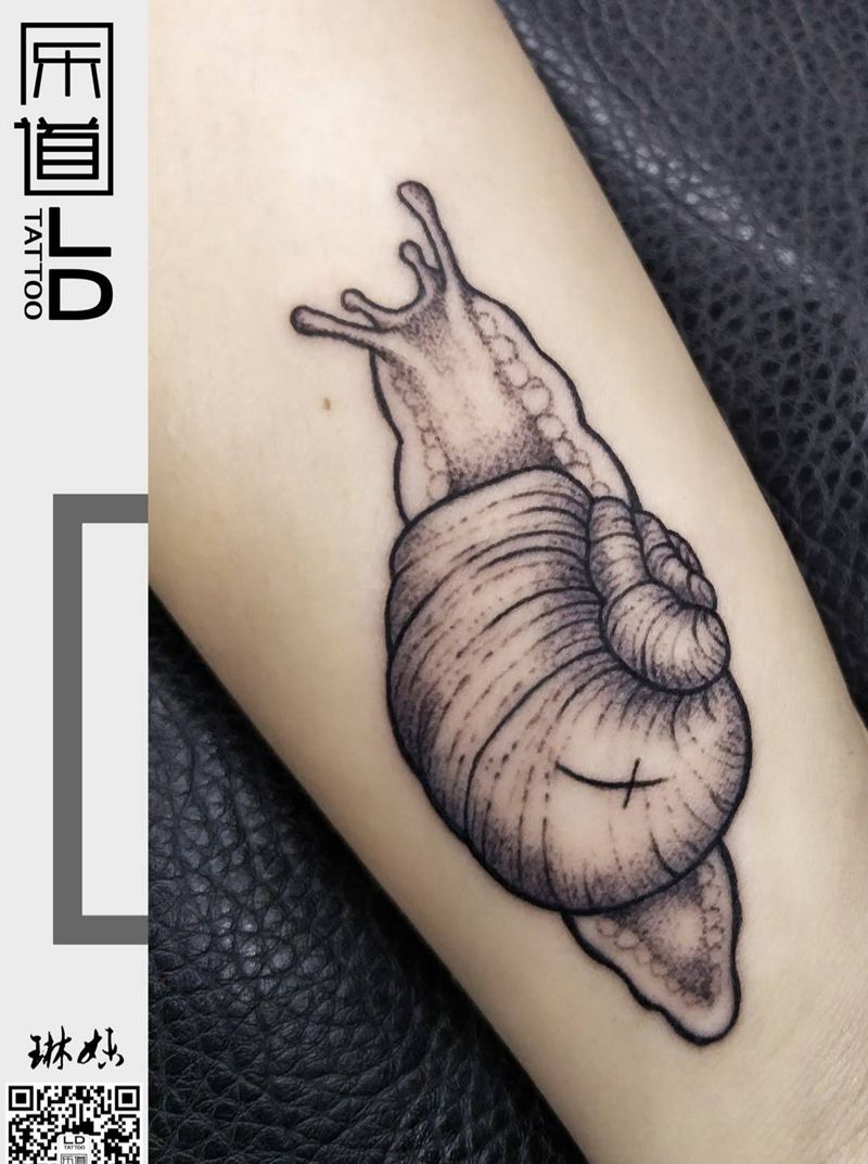 点刺蜗牛纹身图片_素描动物清新手臂插画成品手稿纹身图案
