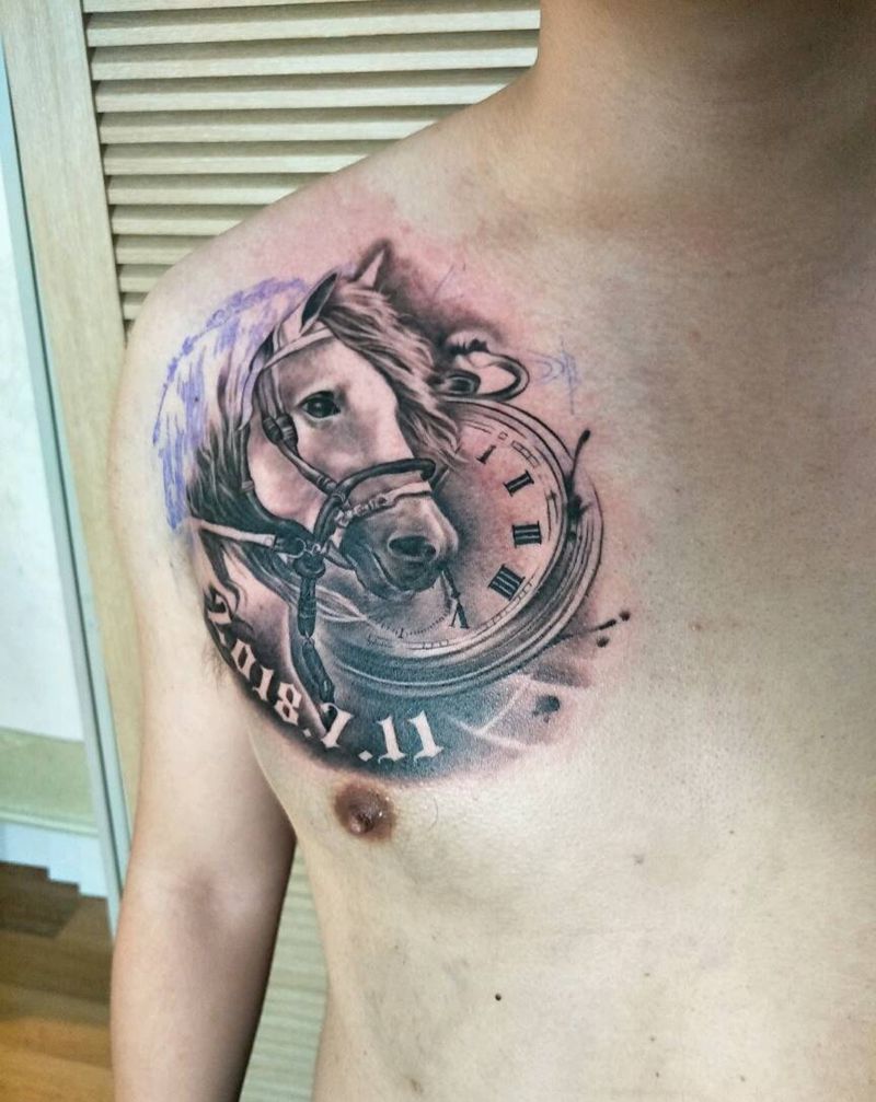 马纹身图片_胸部欧美写实动物原创纹身图案
