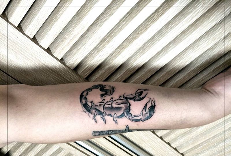 当前位置: 首页 >山东省青岛市纹身店-西海岸美术刺青纹身图案>天蝎座纹身图片_手臂清新动物静物原创星座天蝎成品手稿插画纹身图案