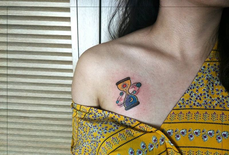 当前位置: 首页 >山东省青岛市纹身店-西海岸美术刺青纹身图案>彩色小图合集纹身图片_手臂肩部点刺水彩水浪,沙漏纹身图案