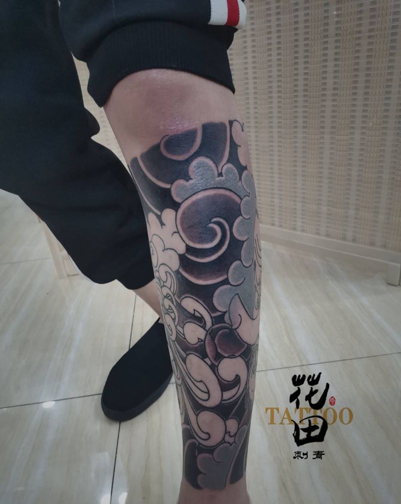 • T网红王老大花腿龙纹身图片_腿部新传统纹身图案