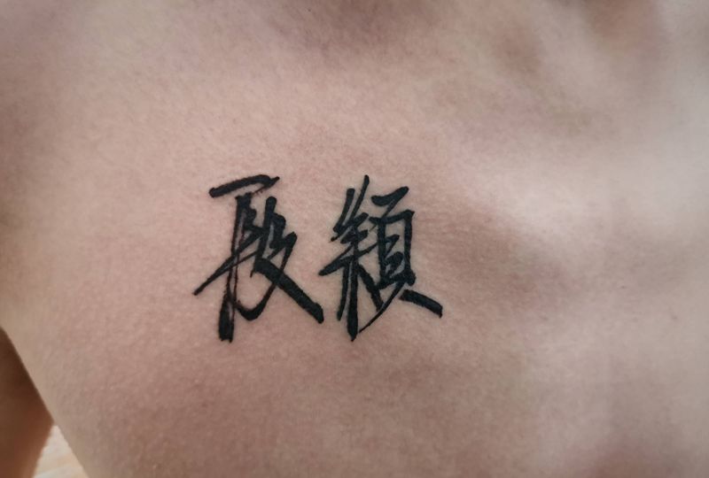 当前位置: 首页 >山东省青岛市纹身店-花田刺青纹身图案>汉字纹身图片_胸部水墨花体字中国风书法汉字纹身图案