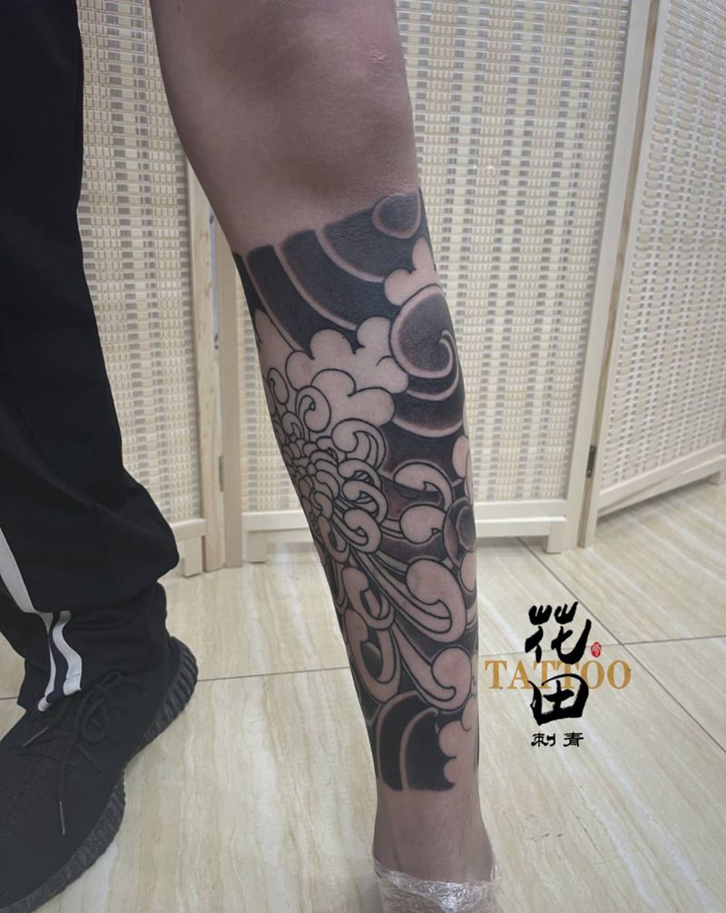 当前位置: 首页 >山东省青岛市纹身店-花田刺青纹身图案>花腿传统雾面(线条非本店)纹身图片_腿部脚部老传统花腿菊花天狗纹身图案