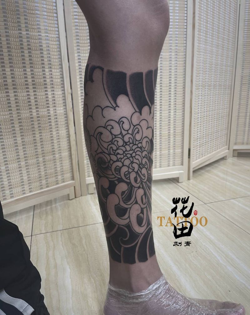 当前位置: 首页 >山东省青岛市纹身店-花田刺青纹身图案>花腿传统雾面(线条非本店)纹身图片_腿部脚部老传统花腿菊花天狗纹身图案