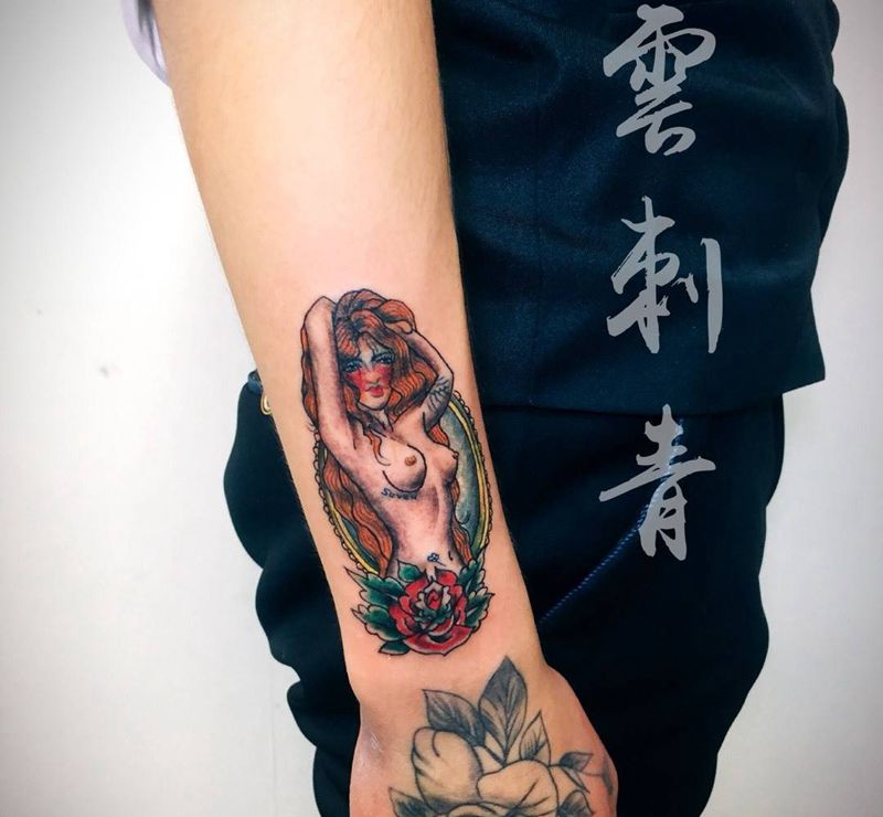 当前位置: 首页 >山东省青岛市纹身店-花田刺青纹身图案>Oldschool裸女纹身图片_雲刺青成品手臂欧美人物纹身图案