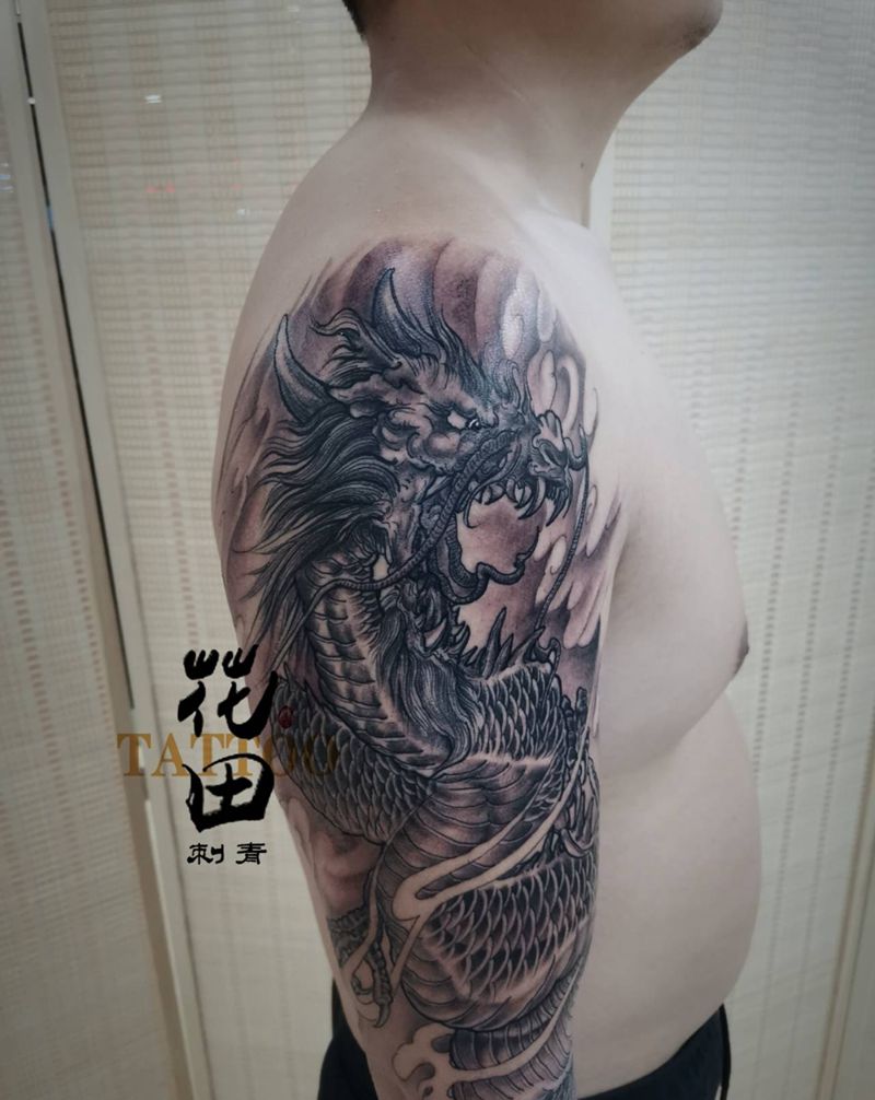 当前位置: 首页 >山东省青岛市纹身店-花田刺青纹身图案>新传统花臂龙纹身图片_手臂肩部新传统老传统龙花臂纹身图案
