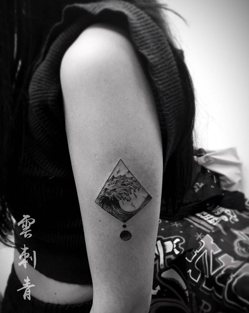 几何浪花纹身图片_雲刺青手臂清新几何纹身图案