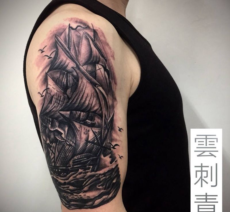 当前位置: 首页 >山东省青岛市纹身店-花田刺青纹身图案>乘风破浪纹身图片