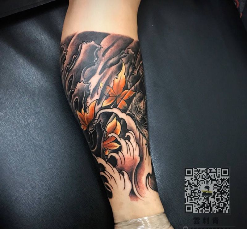 当前位置: 首页 >山东省青岛市纹身店-花田刺青纹身图案>传统小腿纹身图片_成品腿部传统国画雲刺青静物植物纹身图案