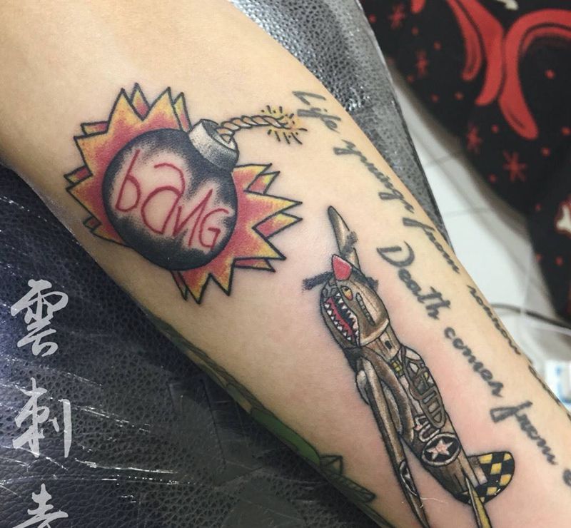 当前位置: 首页 >山东省青岛市纹身店-花田刺青纹身图案>飞机炸弹纹身图片_雲刺青手臂欧美清新纹身图案