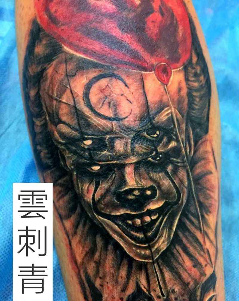 当前位置: 首页 >山东省青岛市纹身店-花田刺青纹身图案>小丑纹身图片_成品腿部欧美肖像雲刺青写实纹身图案