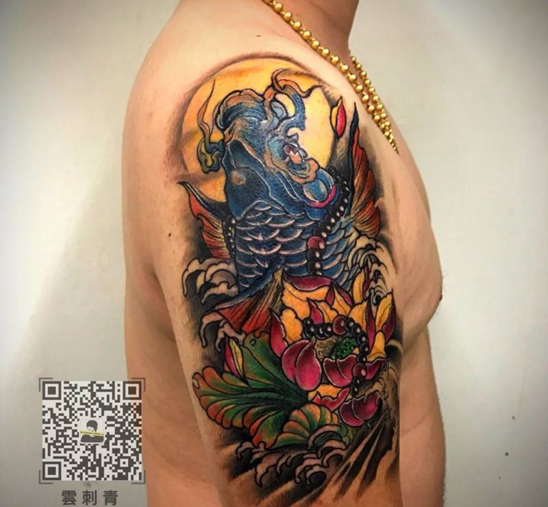 传统鲤鱼纹身图片_成品手臂传统国画动物植物雲刺青纹身图案