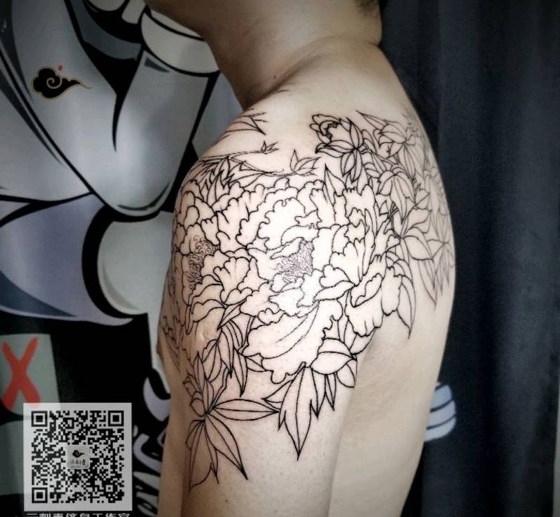线条纹身图片_胸部肩部新传统水墨纹身图案