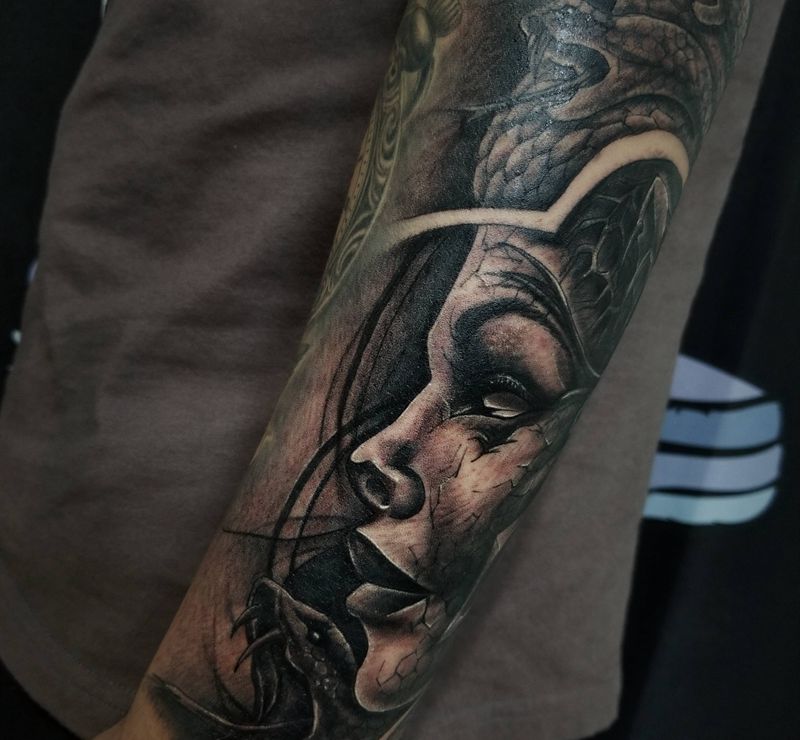 当前位置: 首页 >山东省青岛市纹身店-花田刺青纹身图案>美杜莎纹身图片_手臂欧美写实纹身图案