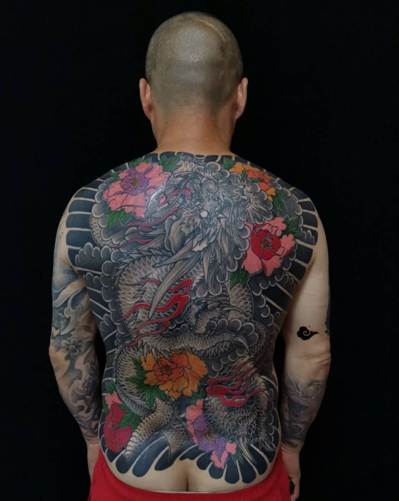 当前位置: 首页 >山东省青岛市纹身店-花田刺青纹身图案>满背传统龙纹身图片_背部老传统龙牡丹纹身图案