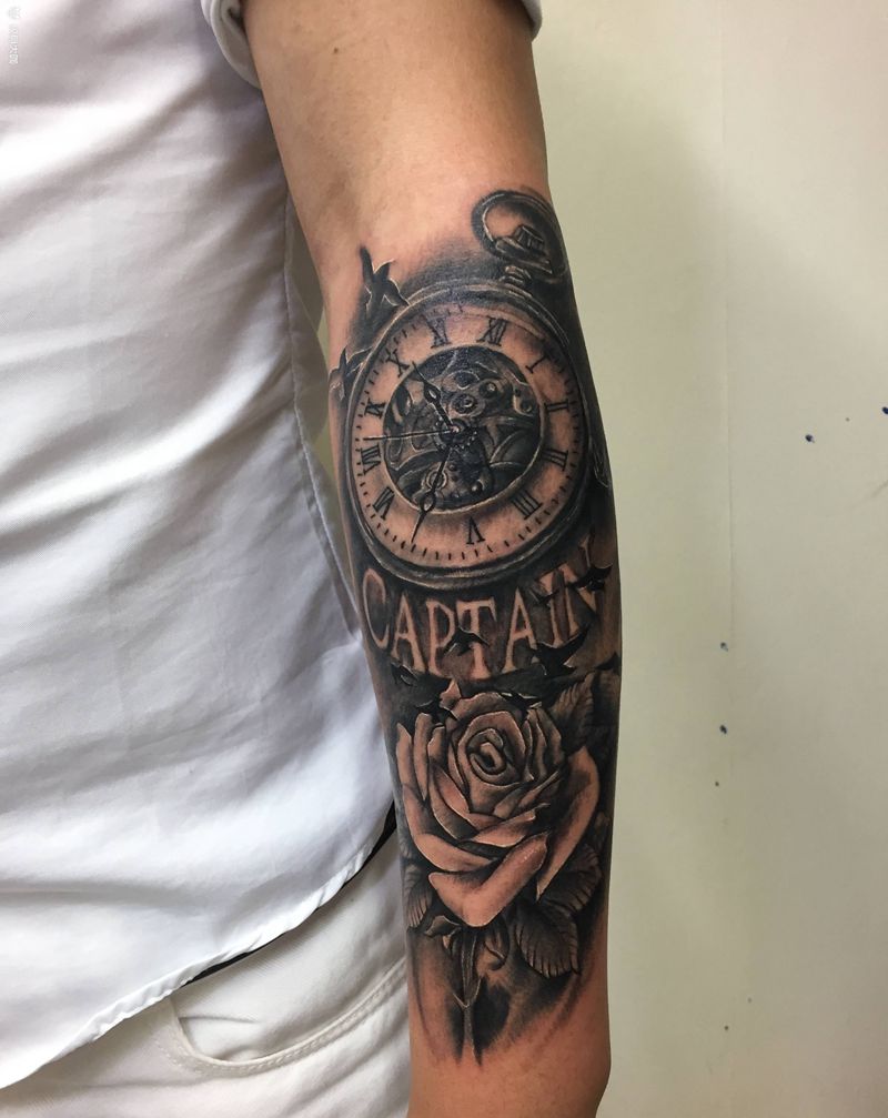 当前位置: 首页 >山东省青岛市纹身店-花田刺青纹身图案>钟表纹身图片_手臂欧美写实纹身图案