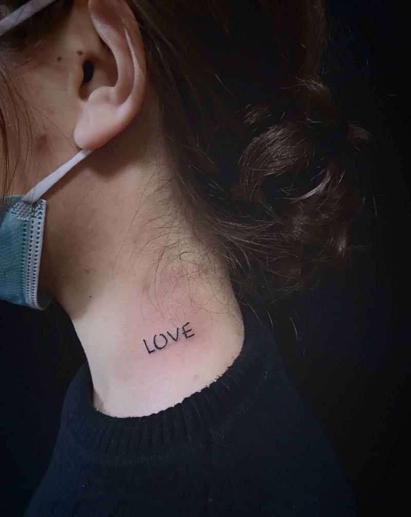朱砂痣 小字母纹身图片_颈部肩部纹身图案