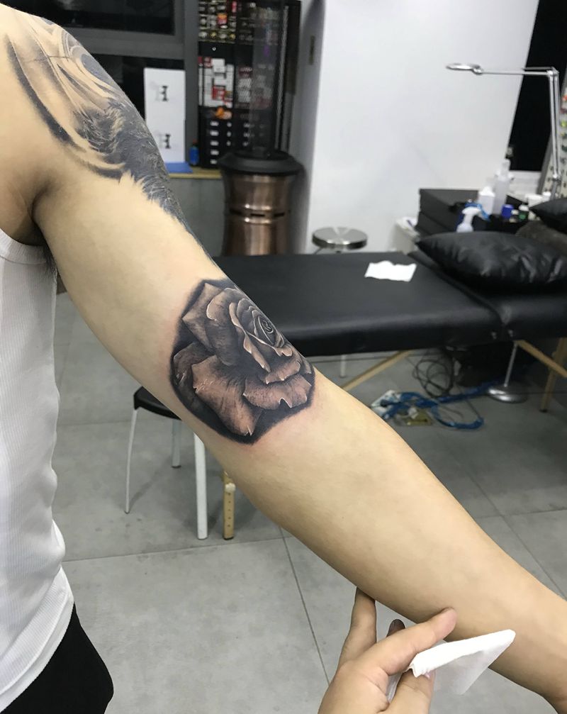 当前位置: 首页 >山东省青岛市纹身店-SKIN TICKET纹身图案>#Rose纹身图片_手臂欧美写实纹身图案