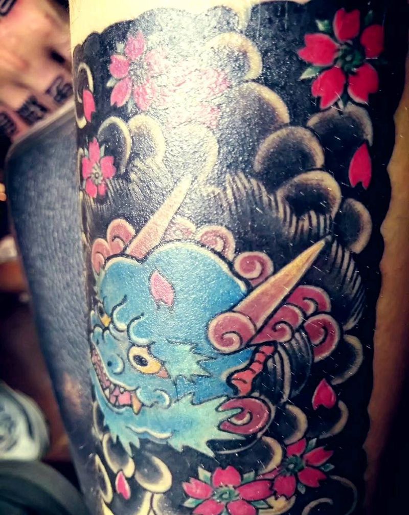 • T网红王老大花腿龙纹身图片_腿部新传统纹身图案