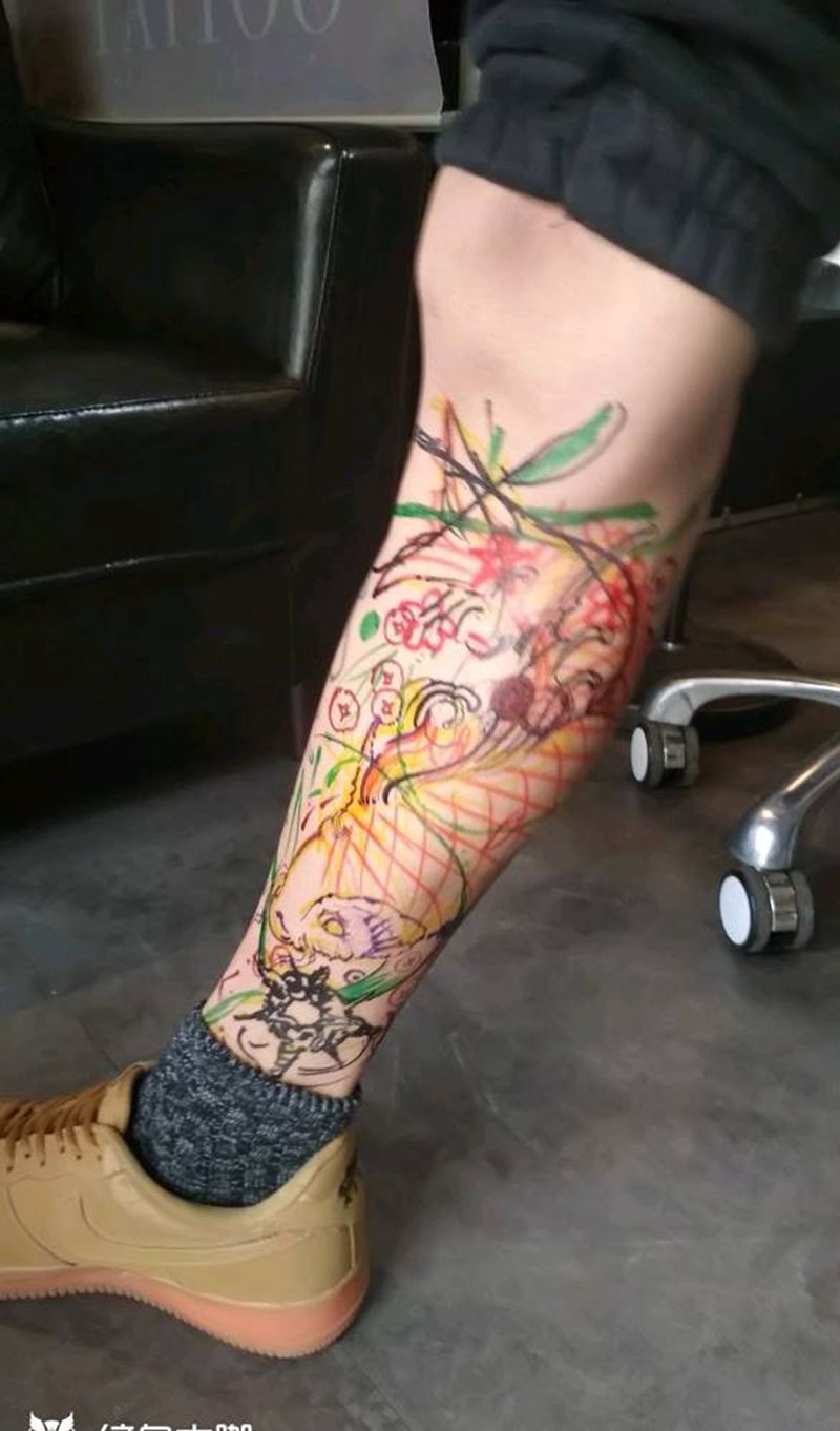 • T网红王老大花腿龙纹身图片_腿部新传统纹身图案