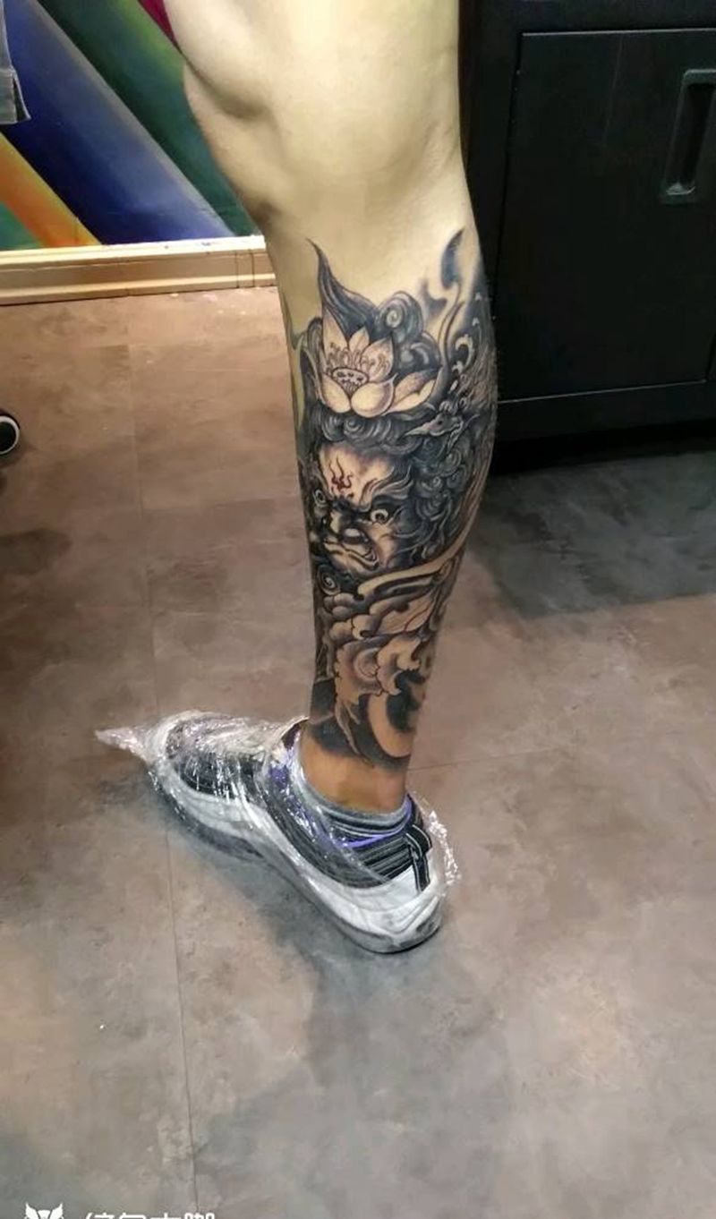• T网红王老大花腿龙纹身图片_腿部新传统纹身图案