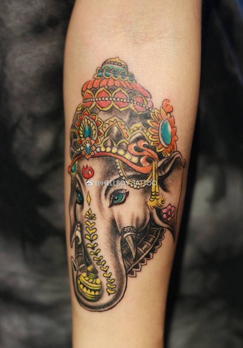 当前位置: 首页 >山东省青岛市纹身店-青岛地狱男爵刺青纹身图案>小臂象神纹身图片_手臂新传统象神纹身图案