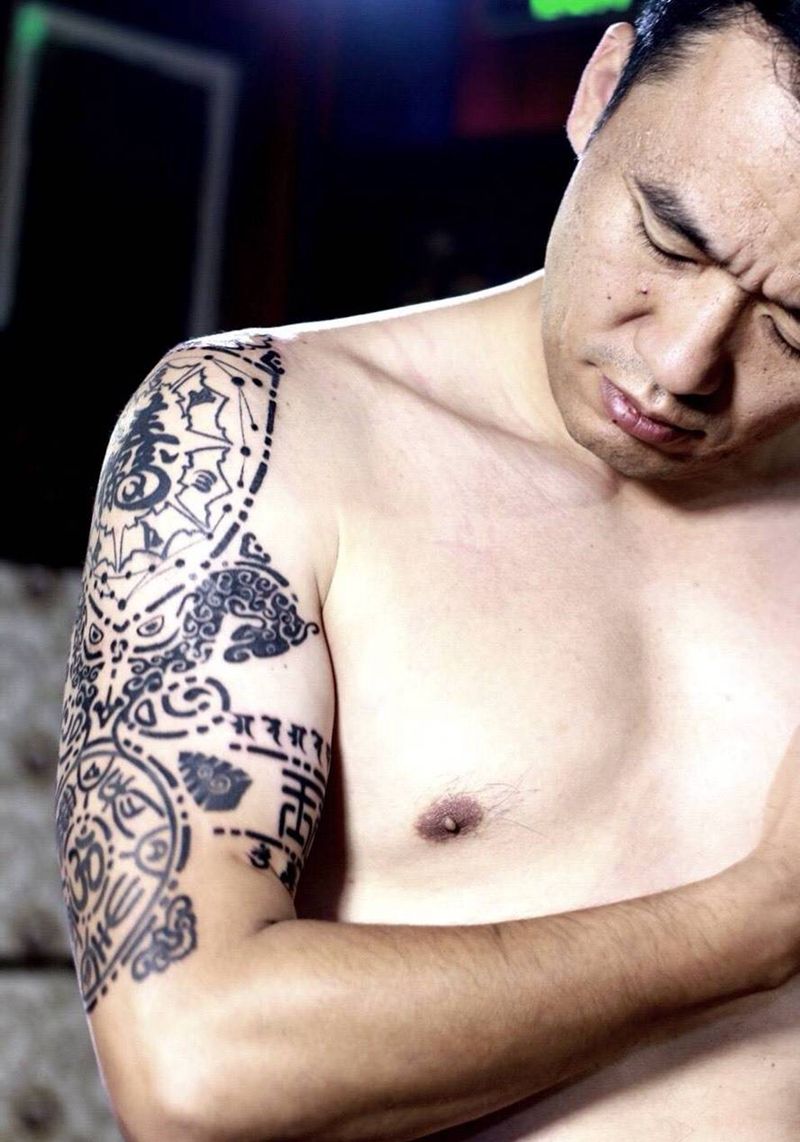 大臂图腾纹身图片_成品手臂传统字符黄岛青岛刺青青岛纹身图案