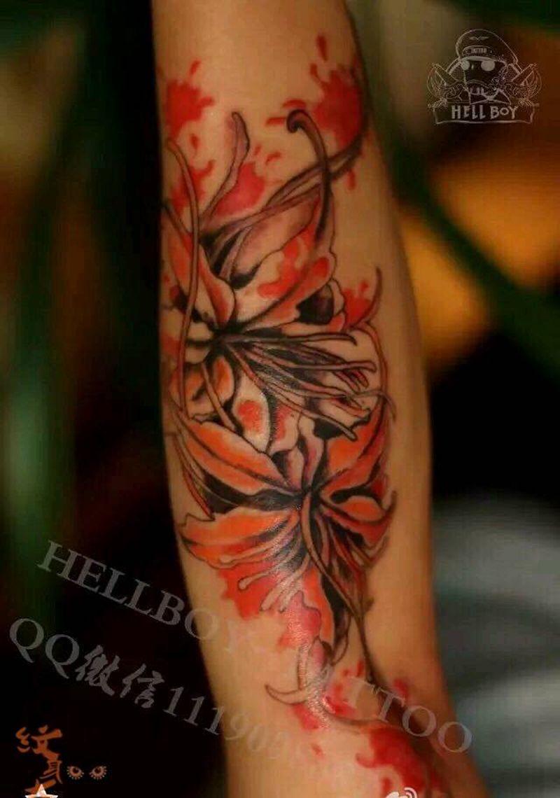 当前位置: 首页 >山东省青岛市纹身店-青岛地狱男爵刺青纹身图案>女士小臂彼岸花纹身图片
