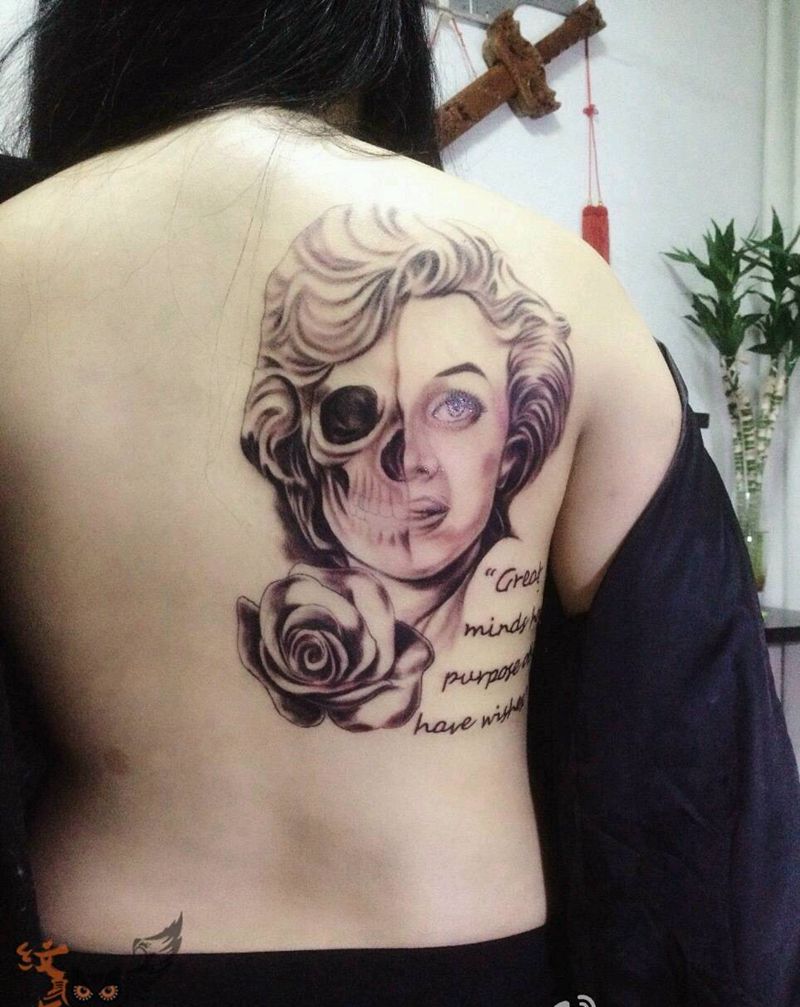 女士后背梦露纹身图片