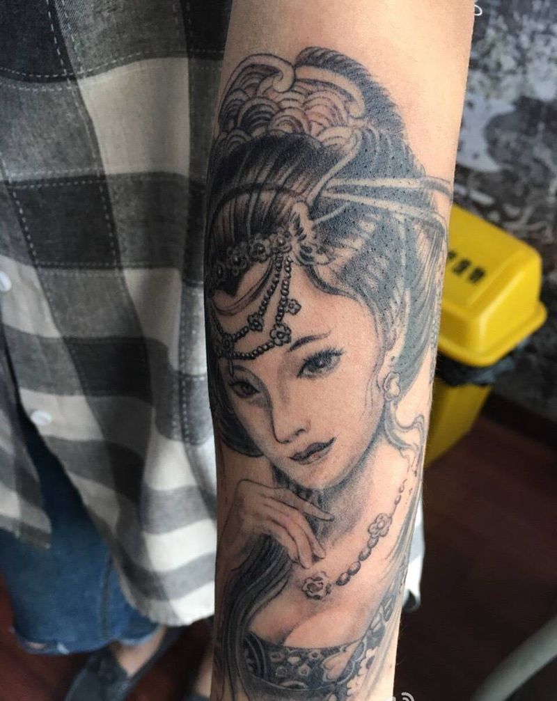 当前位置: 首页 >山东省青岛市纹身店-青岛地狱男爵刺青纹身图案>小臂艺姬纹身图片