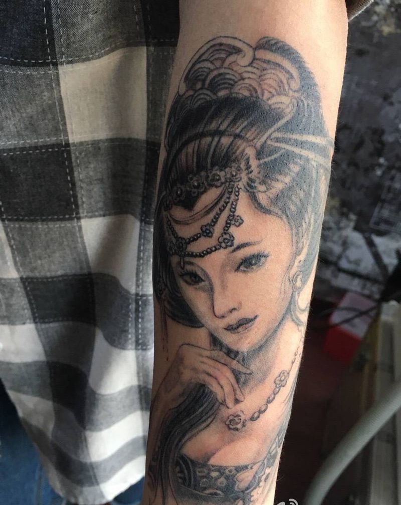 小臂艺姬纹身图片