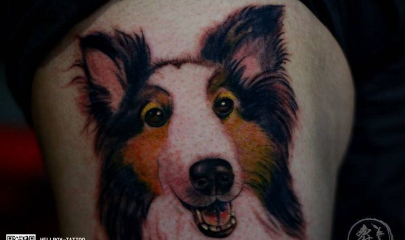 当前位置: 首页 >山东省青岛市纹身店-青岛地狱男爵刺青纹身图案>大腿狗狗纹身图片_成品手稿手臂欧美写实动物青岛纹身图案