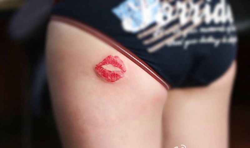 小 清新纹身图片_成品臀部清新原创唇印纹身图案
