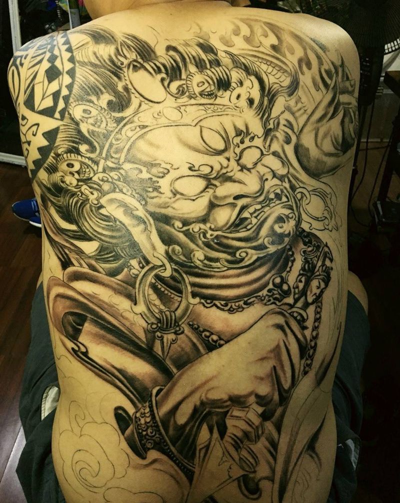 当前位置: 首页 >山东省青岛市纹身店-青岛地狱男爵刺青纹身图案>满背大黑天纹身图片_成品背部传统肖像人物鬼神青岛黄岛纹身图案