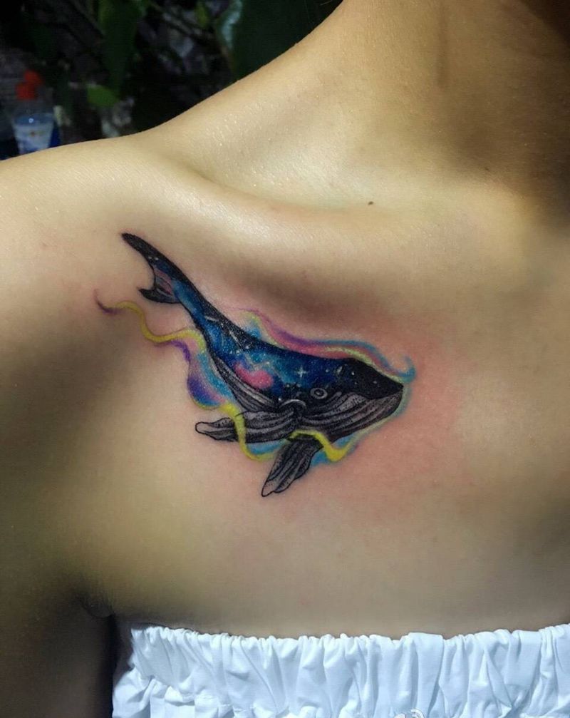 彩色小鲸鱼纹身图片_成品胸部欧美动物青岛黄岛鲸鱼纹身图案