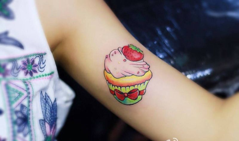 大臂蛋糕纹身图片_成品手臂欧美蛋糕青岛黄岛纹身图案
