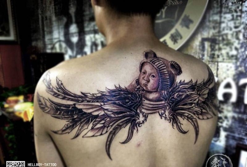 当前位置: 首页 >山东省青岛市纹身店-青岛地狱男爵刺青纹身图案>半背翅膀纹身图片_成品背部欧美青岛翅膀纹身图案