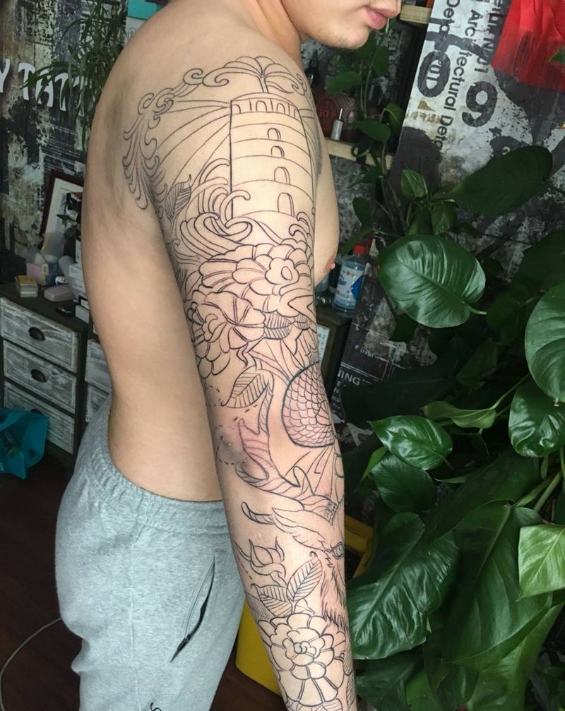 当前位置: 首页 >山东省青岛市纹身店-青岛地狱男爵刺青纹身图案>欧美花臂,割线完毕纹身图片_成品手臂欧美动物人物青岛黄岛纹身图案