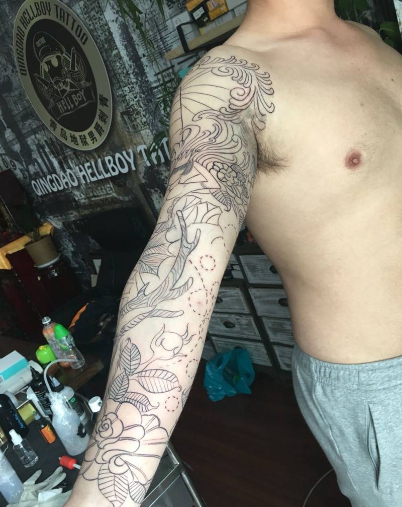 当前位置: 首页 >山东省青岛市纹身店-青岛地狱男爵刺青纹身图案>欧美花臂,割线完毕纹身图片_成品手臂欧美动物人物青岛黄岛纹身图案