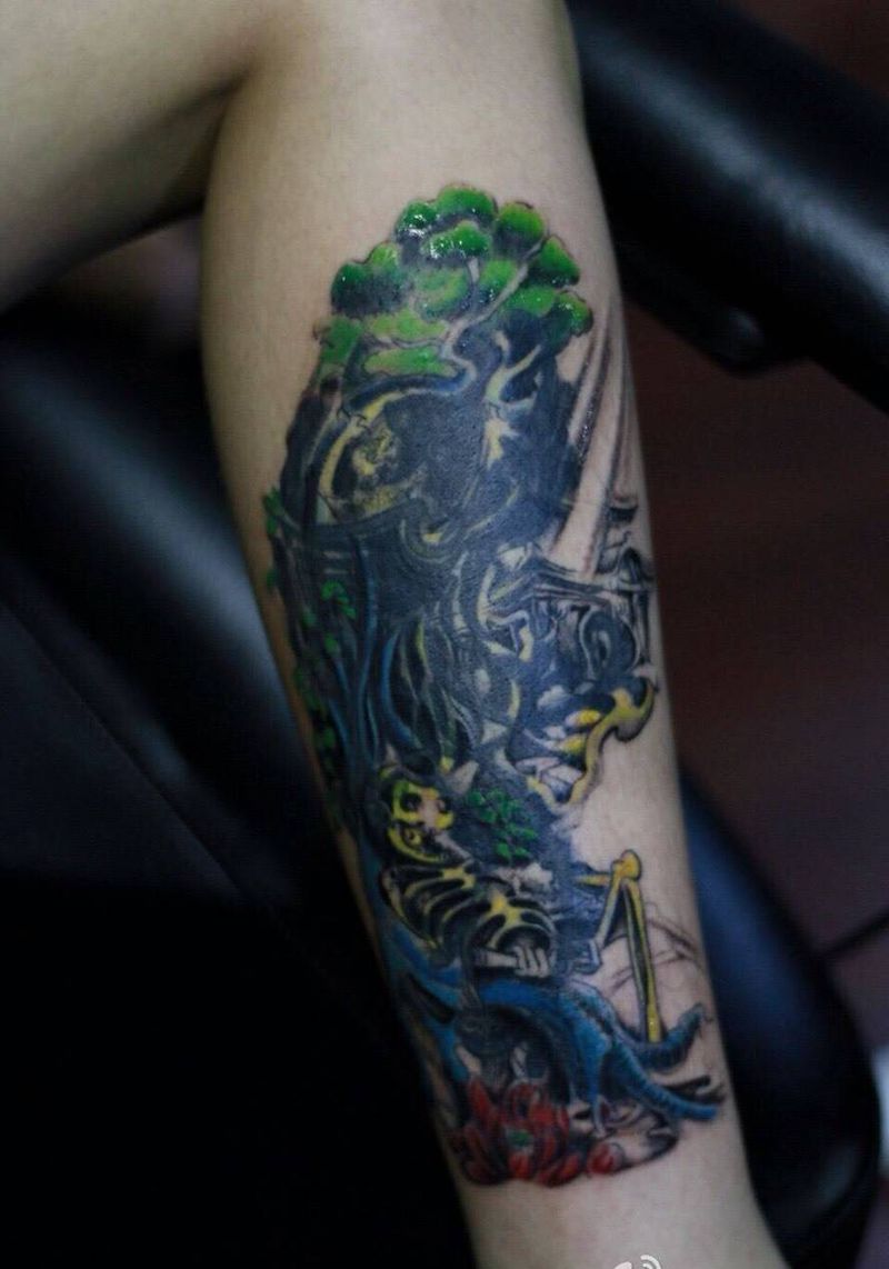 • T网红王老大花腿龙纹身图片_腿部新传统纹身图案