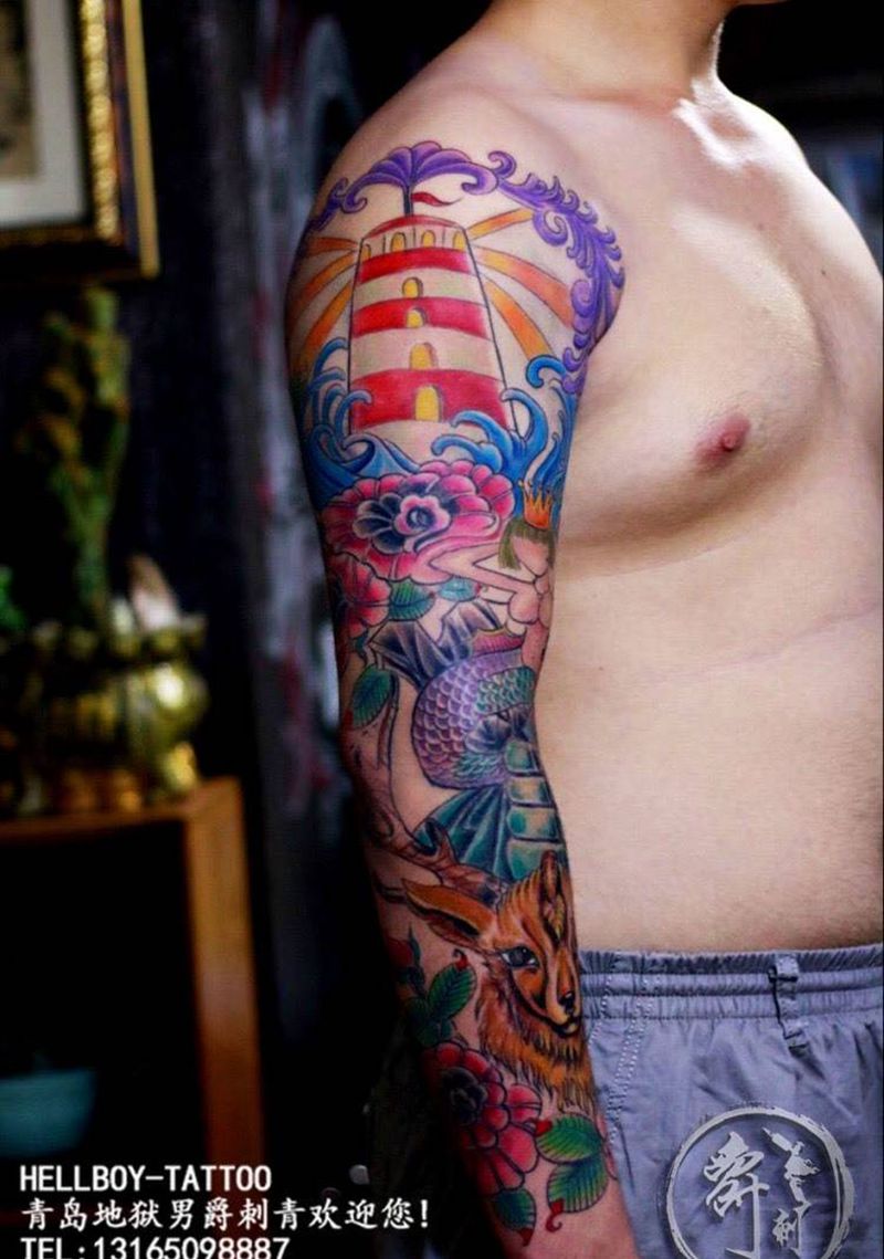 当前位置: 首页 >山东省青岛市纹身店-青岛地狱男爵刺青纹身图案>花臂纹身图片_成品手臂肩部欧美原创宗教青岛植物动物黄岛纹身图案