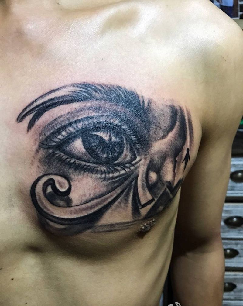 荷鲁斯之眼纹身图片_胸部欧美荷鲁斯之眼纹身图案