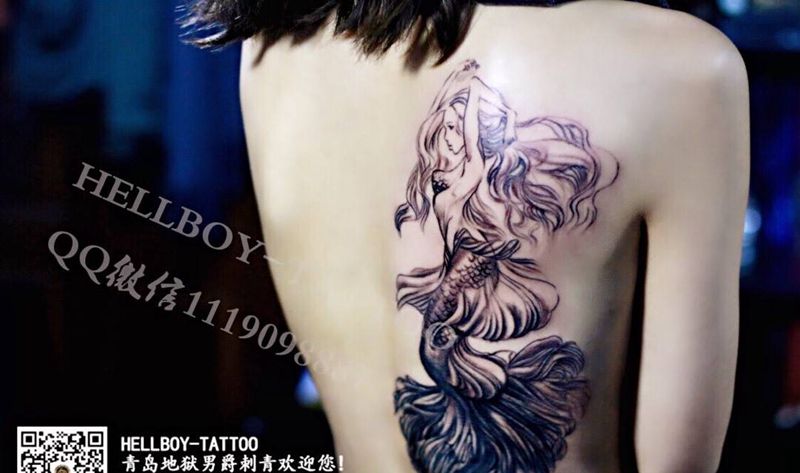 美人鱼纹身图片_成品插画背部欧美人物青岛文身黄岛美人鱼纹身图案