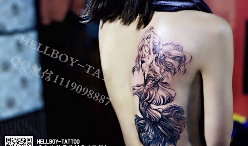 美人鱼纹身图片_成品插画背部欧美人物青岛文身黄岛美人鱼纹身图案