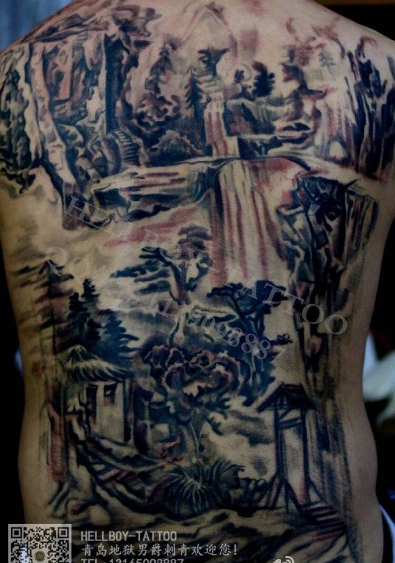 当前位置: 首页 >山东省青岛市纹身店-青岛地狱男爵刺青纹身图案>满背山水纹身图片
