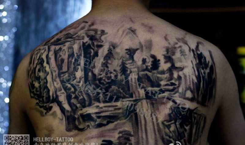 当前位置: 首页 >山东省青岛市纹身店-青岛地狱男爵刺青纹身图案>满背山水纹身图片
