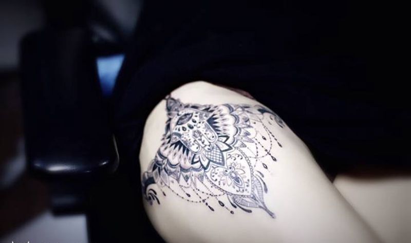 大腿法蒂玛纹身纹身图片_成品欧美腿部图腾黄岛青岛刺青青岛法蒂玛纹身图案