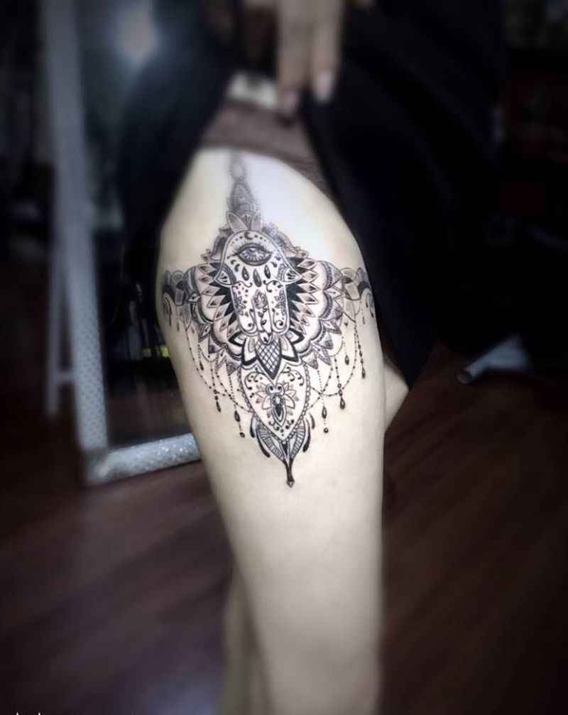 大腿法蒂玛纹身纹身图片_成品欧美腿部图腾黄岛青岛刺青青岛法蒂玛纹身图案