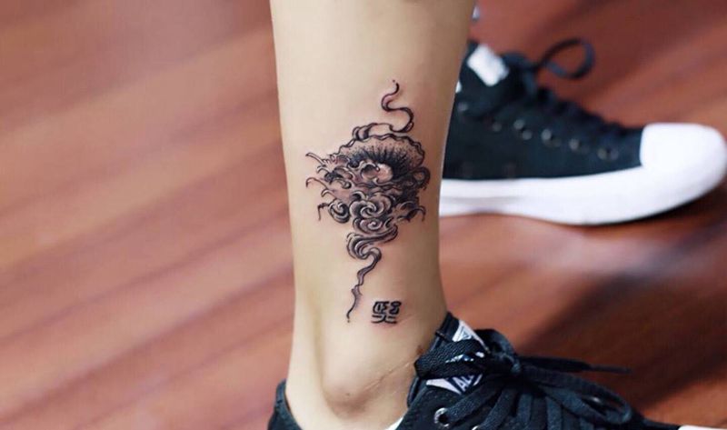 • T网红王老大花腿龙纹身图片_腿部新传统纹身图案